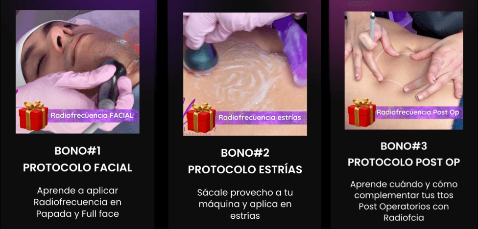 Una de las ventajas de inscribirte en la Fórmula Brasileña con Aparatología es que, además del curso principal, puedes acceder a bonos exclusivos si aprovechas la promoción a tiempo.