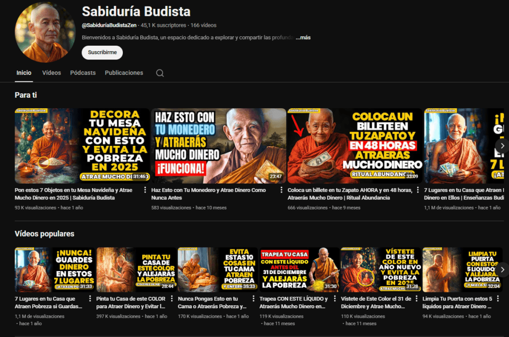 Es un ejemplo claro de canal faceless, escalable y basado en procesos, donde el valor está en el contenido y no en la exposición personal.